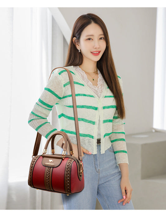 حقيبة بوسطن نسائية من جلد البقر وألوان متباينة