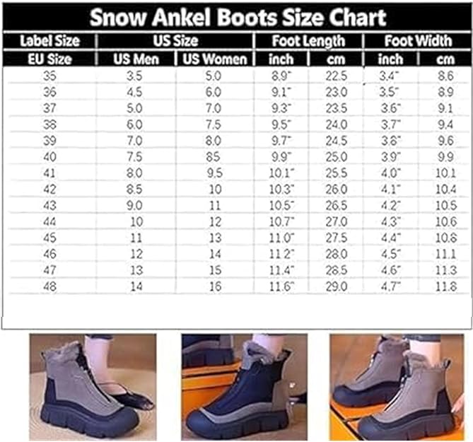 - تصميم بسحاب أمامي: تتميز أحذية الثلج النسائية بتصميم بسحاب أمامي، عصري ويناسب قدميك بشكل مثالي، مما يجعلها مريحة وآمنة، وسهلة الارتداء والخلع لمظهر أنيق. سهلة الارتداء والخلع، جميلة وعملية. بطانة من الفرو الصناعي المريح والناعم ونعل داخلي مبطن، يحافظ على دفء قدميك في الشتاء البارد.