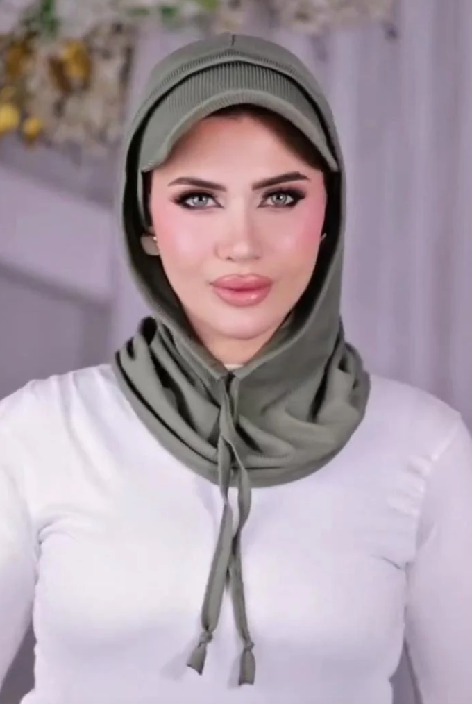 رحبي بحجابكِ الجديد المُفضّل - حجاب القبعة المُدمج ، المُصمّم خصيصاً لصباحاتكِ المُفعمة بالحيوية وأيامكِ المُشمسة . صُمّم هذا الحجاب ليمنحكِ الراحة والاحتشام والأناقة البسيطة، ويتميز بغطاء مُخاط يحمي عينيكِ من أشعة الشمس القاسية ويمنحكِ إطلالة عصرية.