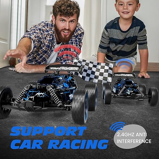 - 【سهلة التحكم】 مجهزة بوحدة تحكم 2.4 جيجاهرتز، تجعل التشغيل سهلاً. يمكن أن تتسابق سيارتين أو أكثر معًا دون تشويش عن بعد.