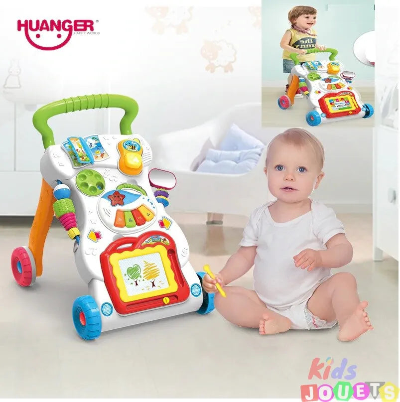 بفضل هذه المشاية القوية والمستقرة ولوحة الرسم الخاصة بها، يتخذ الطفل خطواته الأولى بأمان تام.