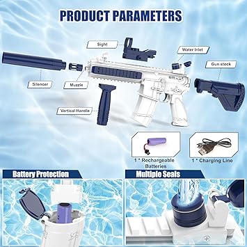 - 【Cadeau parfait】 Ce pistolet à eau électrique est parfait pour les enfants et les adultes. Il convient au bord de la mer, à la plage, à la piscine, à la fête et vous amène à vous amuser illimité. Dans le même temps, Water Gun est également le meilleur choix pour le cadeau d'anniversaire pour les enfants.